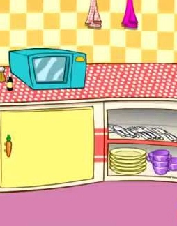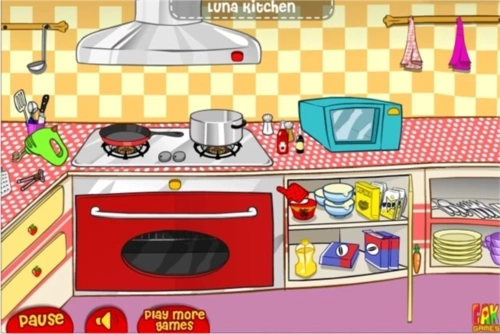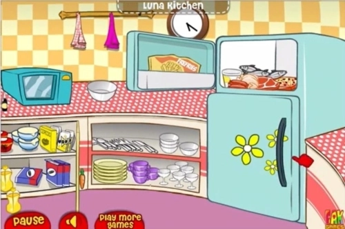 在露娜开放式厨房里有这些东西不可以使用:搅拌机、挂钟旁边的毛巾、水池下面第一个柜子的第二层的纸、接水。在洗碗池下面的柜子里【右】有几个罐头,你可以用类似剪刀的东西去打开它。肉、蔬菜……都可以用刀切(鸡蛋除外)大部分东西都可以用比较大的微波炉去煮熟做汤。水池下面的橱柜打开,上面一层的罐头(有很多,随便选一个),用搅拌器旁边那个像剪刀一样的东东,打开罐子。
