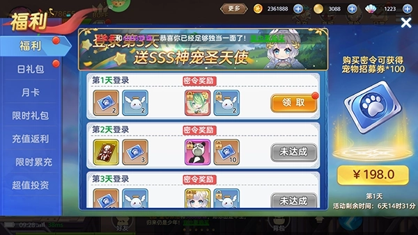 4、福利获得:在游戏内还有诸多福利获得可以免费参与领取,里面包含着大量代金卷和稀有道具材料。
