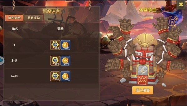 除了刚刚提到的最终BOSS专属奖励,恶魔迷宫还有排名奖励、层数奖励两种奖励哦,排行奖励会根据冒险家爬到迷宫第八层花费的总时间计算,奖励非常丰富,冒险家大人们不要错过哦。