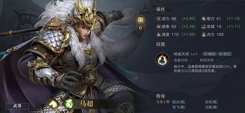 在橙将方面,我推荐马超。顶级的普攻型武将,输出能力极强,并且有几率造成双倍伤害,更是其作为6C主力之本。