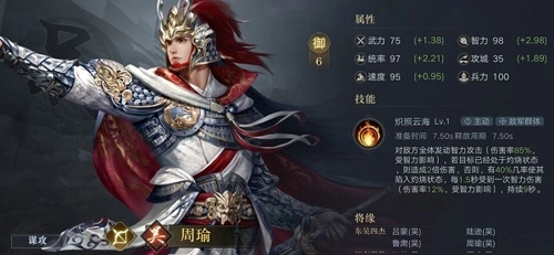 周瑜是吴国的智力输出代表,同时也是灼烧流武将的代表