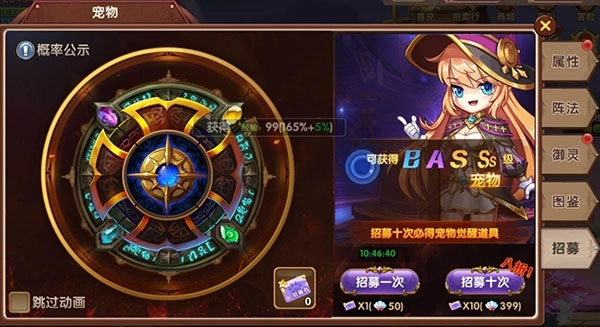 2.进入宠物招募界面,血统检验√!(据说哪怕非洲人一个十连都能拿到最少2个SS宠物哦)