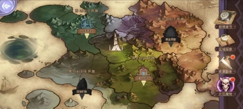 区域探索内一共分为4个地区,每个地区所要求前置章节都是不一样的,奖励也是不同的,排名分别为幽暗密林-石南荒野-遗忘海域-海姆遗迹4个区域,区域里分为很多个小关卡,类似于爬塔,越往下打探索给的奖励就越好,当然这个奖励指的是挂机探索奖励。