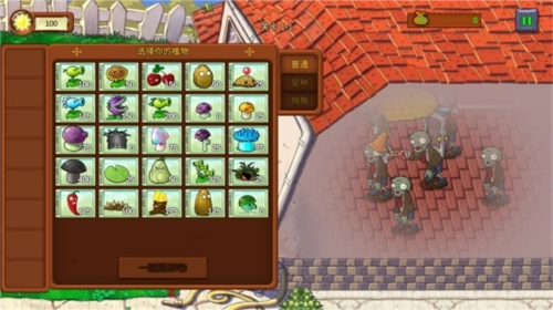 1、首先我们进入植物大战僵尸北美中文版游戏中,在开始游戏之前选择好自己的植物,注意看有哪些僵尸!