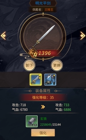 合成完毕给门客重新分配装备,用玄铁强化到最高等级,最后再去挑战【凌烟阁】,就算是绿色装备都要给门客戴上,整体实力达到今日巅峰,这样就能在凌烟阁拿到更好的名次啦!