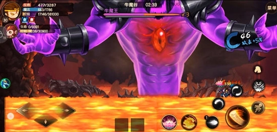 2、牛魔王的伤害很高,要灵活运用技能躲避伤害,被牛魔王冲撞后会被追加连续的技能攻击,尽量避免被冲撞。