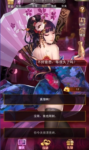 2、聊天功能开动脑筋想象一下女神是什么类型来回答女神的问题,评论得分越高增加的好感度也越高,与女神聊天需要亲密卡,亲密卡消耗完了记得去商城补充