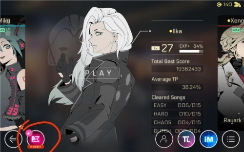 左侧是抽卡系统,需要花钱解锁,左下如图1所示,每个曲包包涵三首曲子,曲子右下角的图标是解锁曲子所在人物曲包,如下图2人物曲包背景标识和曲子对应。