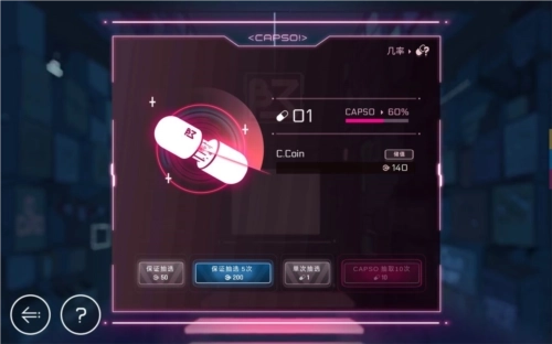 左上如图所示,和普通抽卡游戏一样,奖品包涵曲子,人物皮肤,打歌点击音效,人物海报,无保底,重复物品会兑换成人物经验值,同样可以选择钱或胶囊抽取。