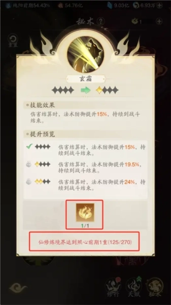 以修仙为例,想要解锁玄霜秘术,不仅需要一个仙之真念,还需要修炼境界达到照心前期1重。