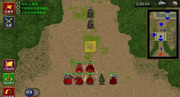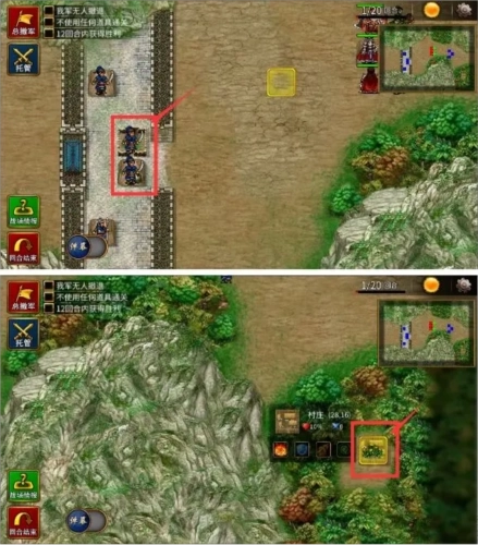 一开始这关的敌人很好杀,不用多说。进入关卡后,杀到只剩2个敌人时,他们就会下来。这时候孙策要上去堵,但容易被反死,所以留一个敌人,用韩当的手戟把他定住。等孙策站到他边上,这时候大家都要保持满血,回合结束后所有人都能动,再让孙策把他反死。这样进去后中埋伏时,大家都能先行动。中伏后,孙策从右边回来杀掉最下面的那个山贼;周瑜在孙策上方2格、左边1格的位置给自己加坚固状态;程普去打左下方的山贼;黄盖(此处“黄”推测为黄盖)站到程普的右上角;周泰去中间位置;剩下的4个人去杀下面的2个弓兵,能杀掉2个最好,杀不掉就杀一个、定一个。过了这回合,后面就没什么难度了。