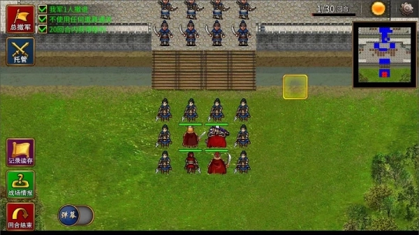 黄盖的任务就是在这一关卡让他去杀刘表,同时必须抓紧时间,要在14回合之前把外面的兵都清理掉。孙坚会死亡,在他死前要把他其他几个部下的血都加满,这时候孙策进去救援后就会自动撤离,不会再主动发起攻击了。