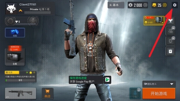 1、首先游戏不需要玩家使用账户密码登录,可以直接进入,来到游戏首页之后,点击右上角的设置。