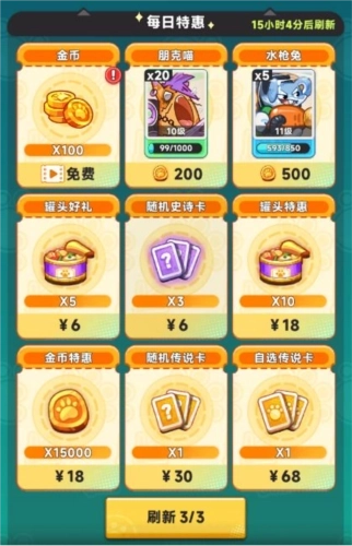 刷新萌宠品质随机,所以一般刷新到金卡一定要拿下!