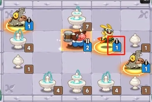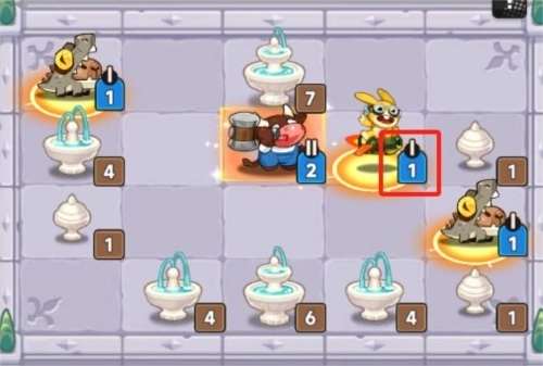 我们不难看出投手熊的扩散是对左右两个格子内的萌宠有效,所以合成投手熊的时候我们尽量保证,他的左右两边是有萌宠或者障碍物的,萌宠的站位,和他升级扩散的收益最大化是我们应该去考虑的问题,而不是不考虑一味的直接去合成。
