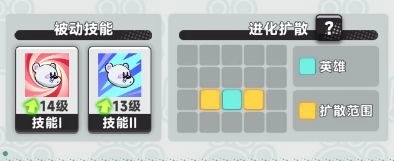 顾名思义,进化扩散可以提升周围英雄的战斗力,或破坏周围的障碍物。每个品质每个英雄扩散的范围是不一样的,我们以大家最开始获得的投手熊为例。