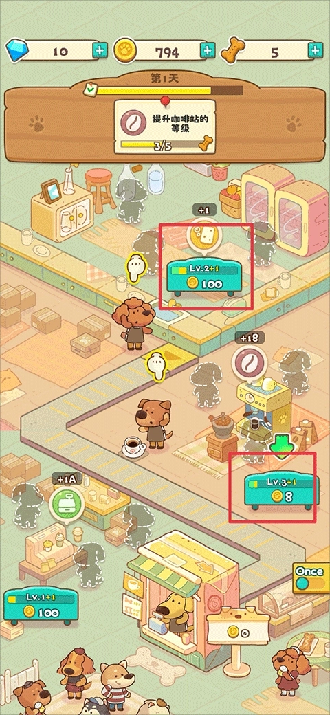 1、玩家可以在游戏里收集各式各样的狗狗员工角色,打造出属于自己的独特咖啡厅。