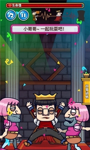 3、动漫风格的游戏背景,大量的剧情对白,玩家需要时刻的小心来自背后的杀机,努力的成为国王;