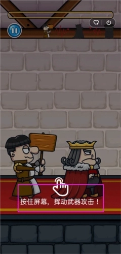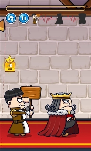 1、当角色走近国王时,长按屏幕,当上面的蓄力条满时,角色挥刀刺向国王。但在蓄力期间,一旦发现国王有回头的动作,手指要赶紧离开屏幕,以防被抓。