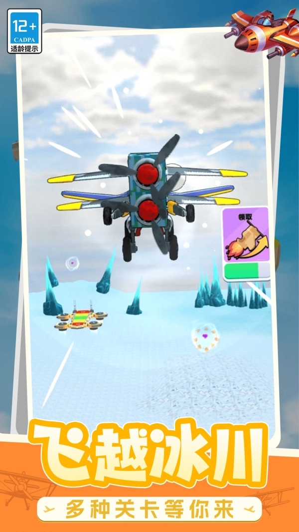 1、飞行途中收集各类道具与资源,这些物品能够用来解锁新的零件,或者对飞机性能进行升级,从而让后续的飞行表现得到提升。