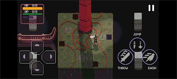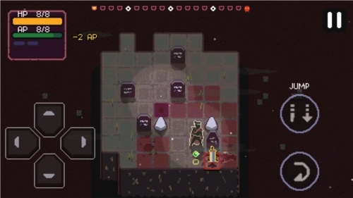 从一个方格跳到另一个方格,如果你有剑,就对周围的敌人造成眩晕效果,如果你没有剑,就只能推他们。