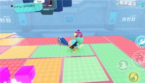 在没有道具的时候把人举起丢出则是我们唯一的进攻手段,可以蹲在一旁假装玩耍,然后等待时机,出其不意暴起发难,也可以见蛋就举,营造恐慌。但是生存赛中危机四伏,切勿在机关到来时还冒然进攻,最最导致双双淘汰,把胜利拱手让人。