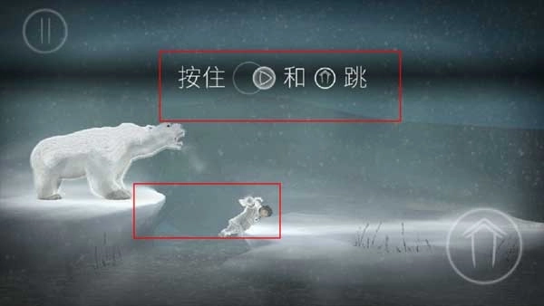 5、故事开始于小姑娘在一个风雪交加的晚上醒来,后面有北极熊追赶,玩家需要点击左边的奔跑按钮开始逃离北极熊的掌下。