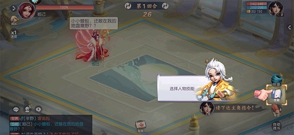 4、触发战斗玩法后,在战斗模式中首先选择人物技能