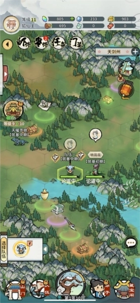 3、历练打怪,开宝箱只选获取修为,然后一边建房子、一边规划自己的山门。(重要!!!注:历练与宗门可以来回切换,互不影响,想让历练弟子回家直接解散队伍即可,不必费劲再绕回家!)