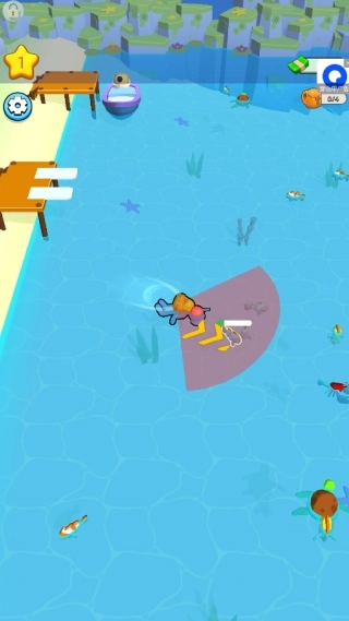 1、在水域场景里操控角色,借助捕捞工具对准不同鱼类开展捕捞活动,优先捕捉稀有鱼类,以此增加水族馆的馆藏品类,为后续的经营活动储备资源。