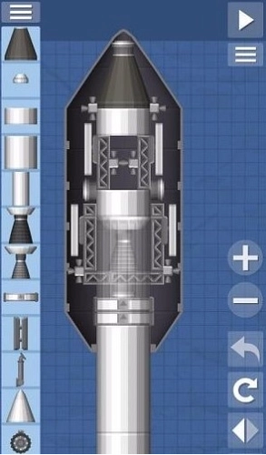 这个火箭是比较简单的火箭样式,里面搭载了一个小型的卫星,超长的燃料箱以及两个辅助的燃料箱提供更多的燃料补给