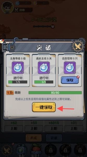 4、升级属性点满需要突破才能继续提升,每一次突破条件都不相同,需要自行收集完成