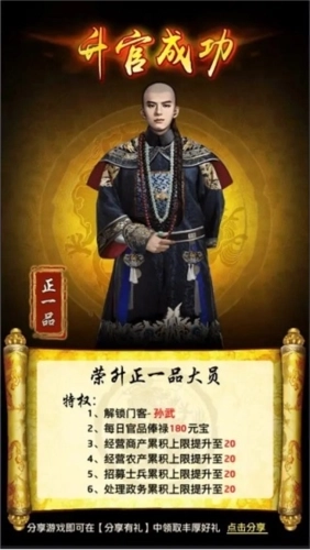 其次,再说说官品解锁功能,提升官品,其乐无穷: