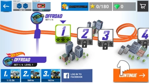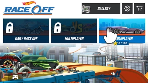 1、进入风火轮赛车游戏的最新版本后,能看到有三种模式可供选择,由于前两个模式尚未解锁,所以先点击最后一个模式开始游玩。