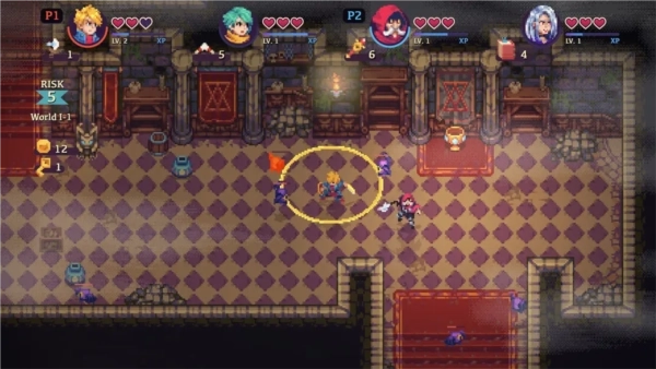 随机使每个关卡都别具特色,每次冒险都出人意料。英雄们在开始每一场游戏时都有不同的属性,这取决于他们所属的星座;骑士、女猎手、大师和法师,这四个角色各有特色,玩法各不相同。如果本地玩家不足四人,则任意玩家都可以随时召唤空闲的角色。