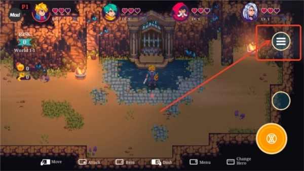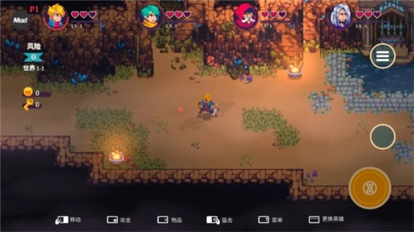 4、进入游戏如图,游戏采用横版移动操作;