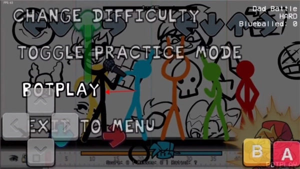 3、在对决的时候点击返回,找到botplay点击就能开启自动模式了。