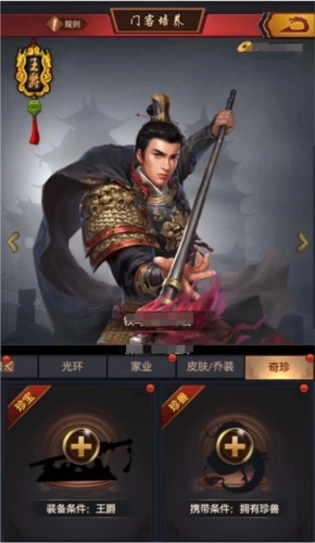 大人可通过给门客装备不同的珍宝,获得珍宝的特殊技能效果,让门客实力更加强劲,并在各个系统活动中运用。