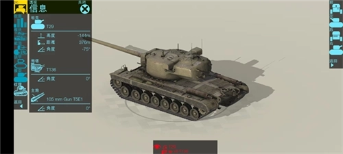 3、而点击透视、等效、撞击、视角,则可以对坦克调整位置,观看具体的数值;