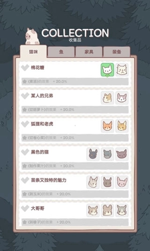 3、在收藏品里面有着你收藏的猫咪、鱼、家具和装备;