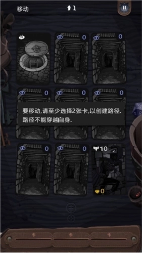 6、门和出口:出口只会在牌堆用尽的时候出现,牌堆数量显示在屏幕左上方。当门或出口未被照亮时可以直接通过,只被照亮或者只被看守时可以从特殊方向通过,方向显示在牌面,是一个锁状的标志。当门或出口被同时照亮和看守,此牌不可通过。