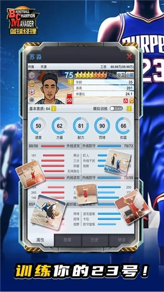 ·你可以从业余联赛开始训练自己的球员,一切由你一手掌控,训练出你自己的明星球员,让他们成为下一个国际篮球巨星!