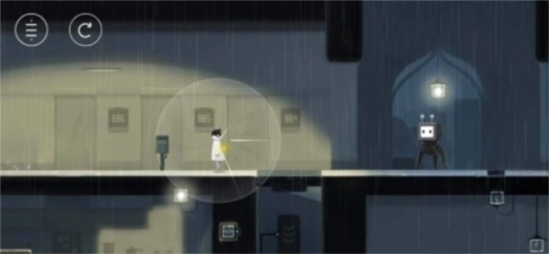 第四步:下来之后吸收一个灯光传递到最右边的灯柱上,接着再吸收一个灯光离开这里,来到下一个场景往右边走,将身上的灯光传递给机器人上方的灯芯。