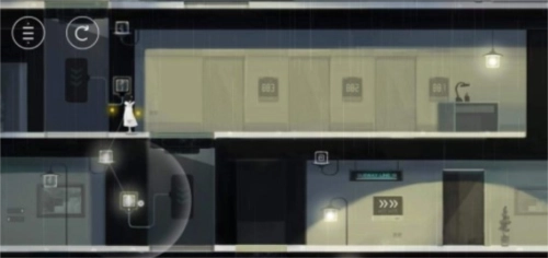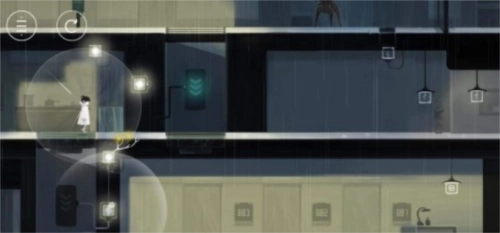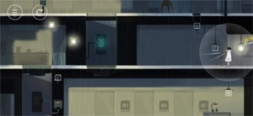 接着往右走一点吸收灯光,往左走来到升降踏板处,把旁边的灯光吸收了,吸收完之后传递给升降踏板的开关并且迅速移动到踏板上。(如果在踏板下降的时候我们的人物没有在上方,那就要重新再来一次,导致无法拿到S级评价)
