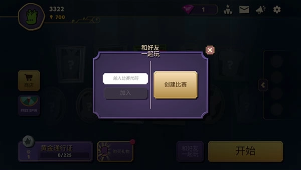 2、然后选择好友创建的比赛代码,或者点击“创建比赛”自己创建一个房间。
