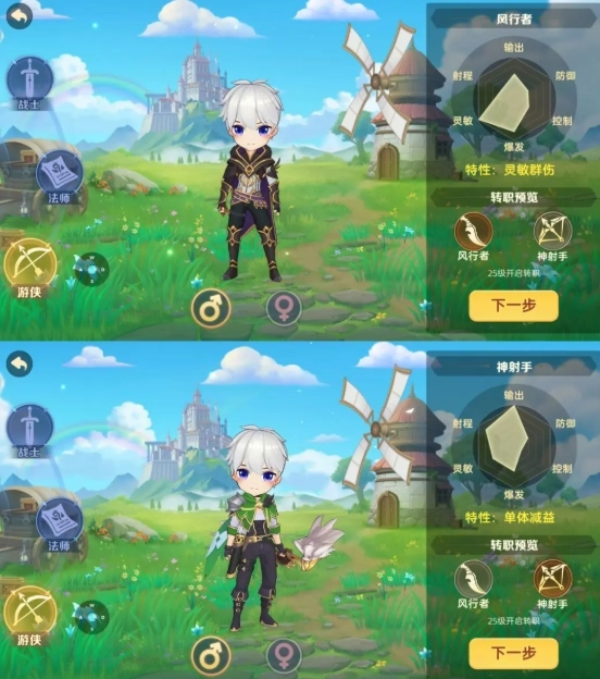 每个职业还分别有两个职业分支,在冒险家达到25级,并完成转职考核后,就可以开启转职啦!