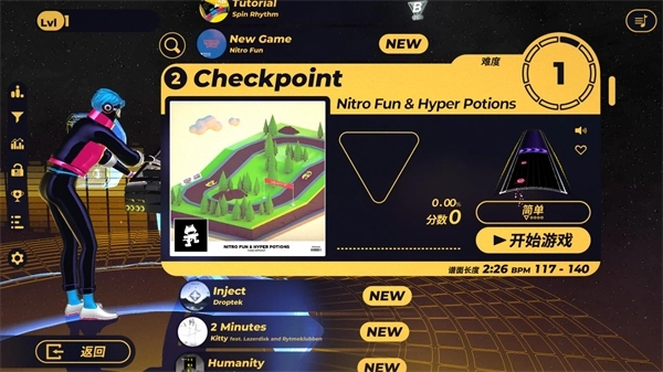 2、点击开始游戏后可以进入关卡选择界面,你可以挑选不同的歌曲来进行挑战。