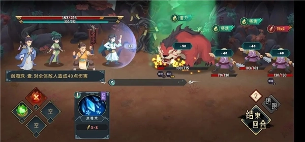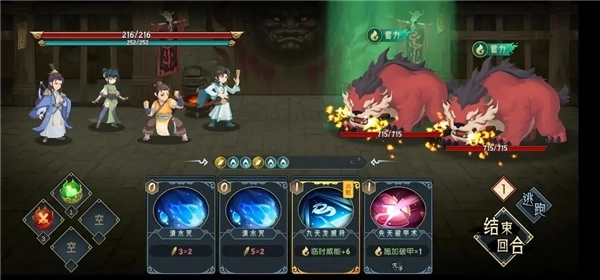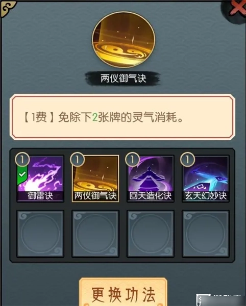 2.战斗中先手使用【两仪御气诀】之后,打两张【百转叠浪诀】,会增加四层【叠浪】,也就是可以让所有水属性卡牌的攻击次数增加4次,这张技能卡牌的灵气消耗就是2张卡牌的灵气消耗就会因为两仪变为0。