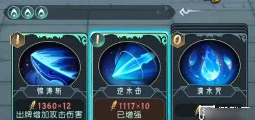 5.倒数第二张打出清风的惊涛斩,使其伤害最大化,最后一张打出撼海决,让其符合增强条件,处于增强状态,伤害最大化。