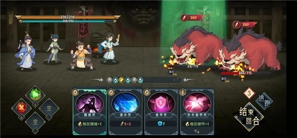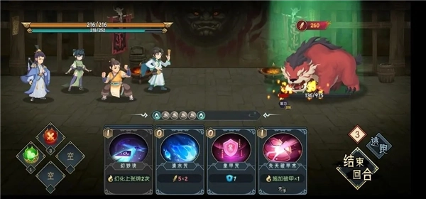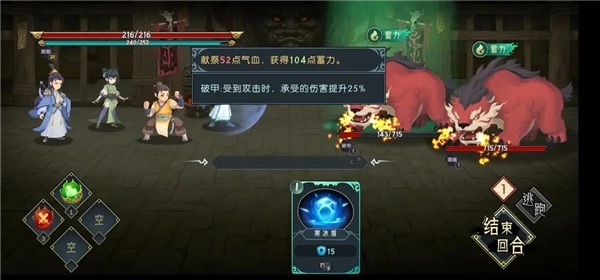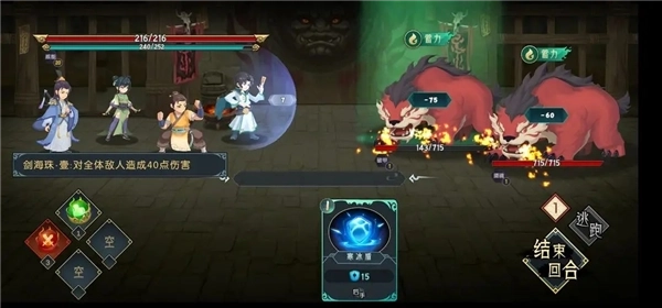 虽然多,但因为血量低了,可以直接秒一只,其实这里剩余的血量证明了,双猪可以交一个剑海,能节省两回合(这猪会每回合-52血,实际血量是减104,如果第三回合打死)